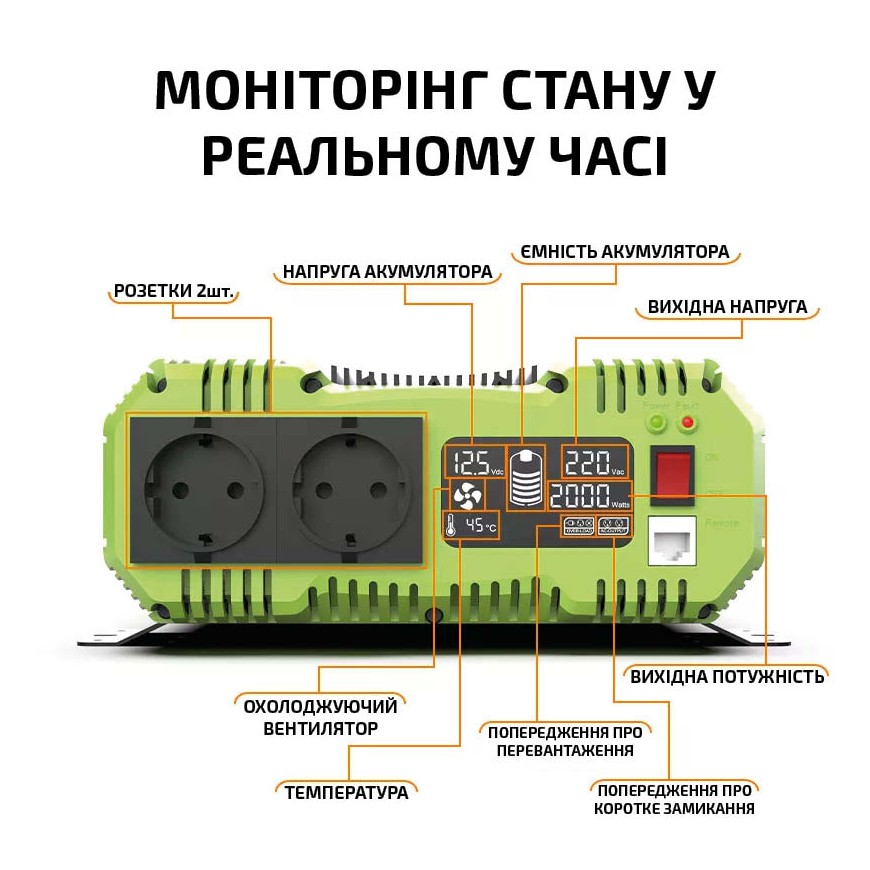 Інвертор 12-220В з чистою синусоїдою 2000Вт/4000Вт (перетворювач