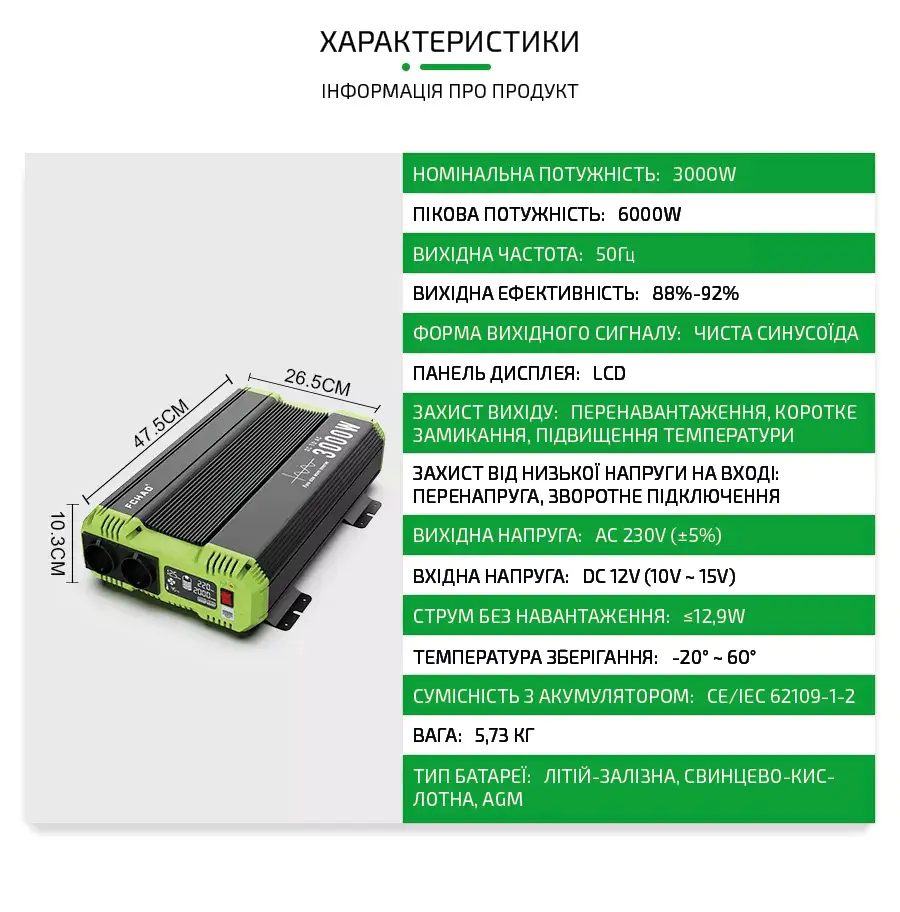 | Выход | Номинальная нагрузка (Вт) | 3000 Вт |