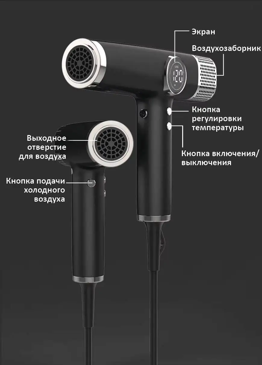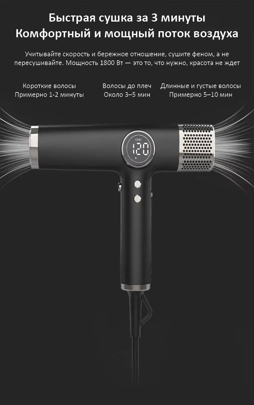 3 скорости потока воздуха — точный контроль мощности под сушку или стайлинг.