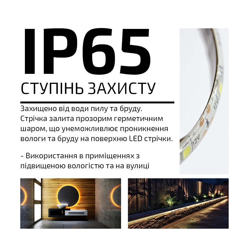 Светодиоды SMD 2835 со степенью защиты IP65 герметичны, что делает их пригодными для использования внутри влажных помещений и на улице.