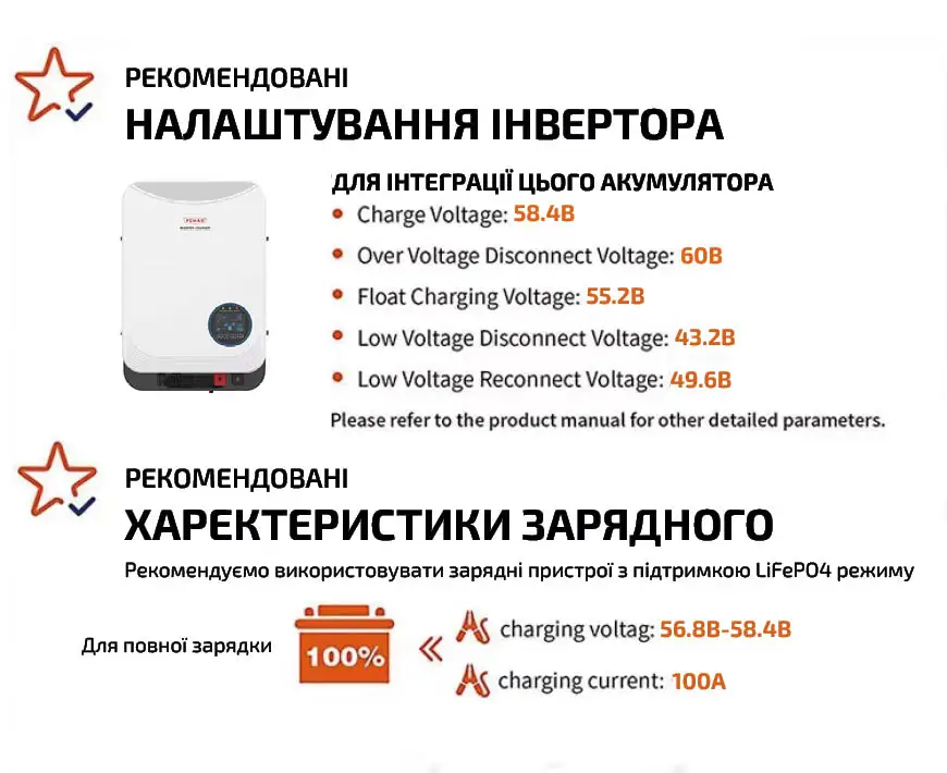 • Высокая безопасность: химический состав литий-железо-фосфата устраняет риск взрыва или возгорания из-за сильного удара, перезарядки или короткого замыкания.