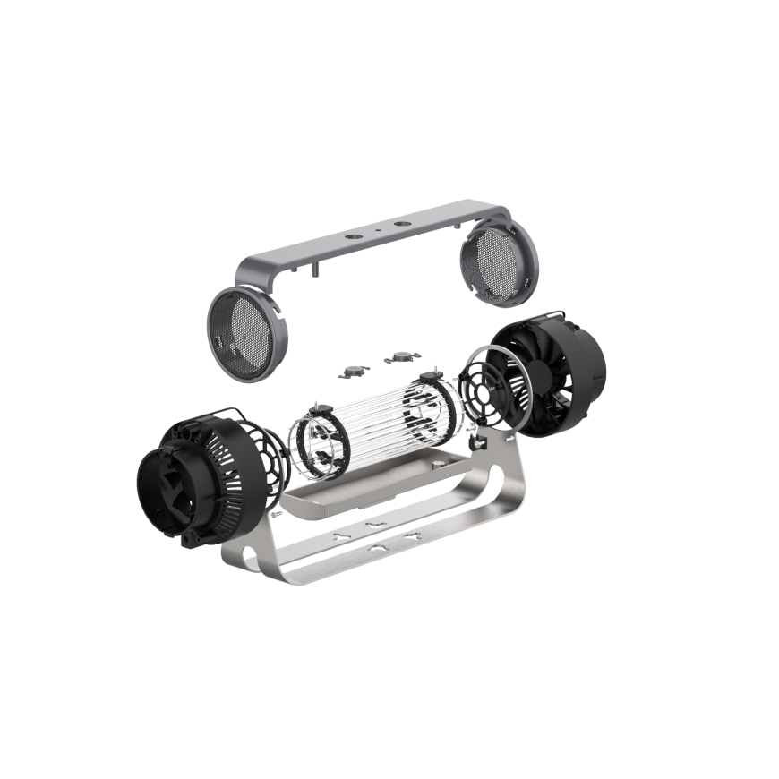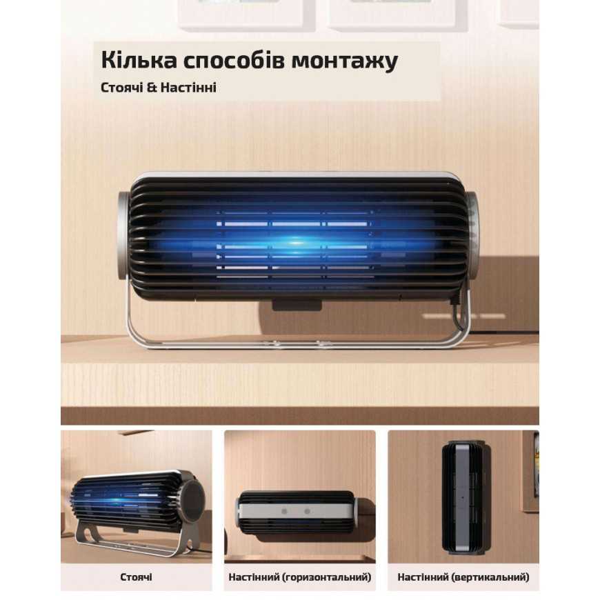 Размеры – 32,6см Х 11,8см Х 16см. Уничтожитель насекомых обладает изысканным лаконичным дизайном. Может быть размещен на столе, закреплен и стене вертикально и горизонтально.