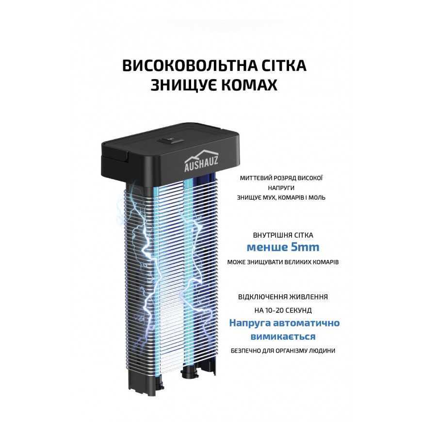 Настольная ультрафиолетовая лампа уничтожитель насекомых AusHauz – эффективное устройство для уничтожения комаров, мух, мошек, моли и прочих насекомых на базе ультрафиолетовых ламп и высоковольтной решетки. Корпус устройства выполнен из долговечного пластика и защитной металлической решетки.