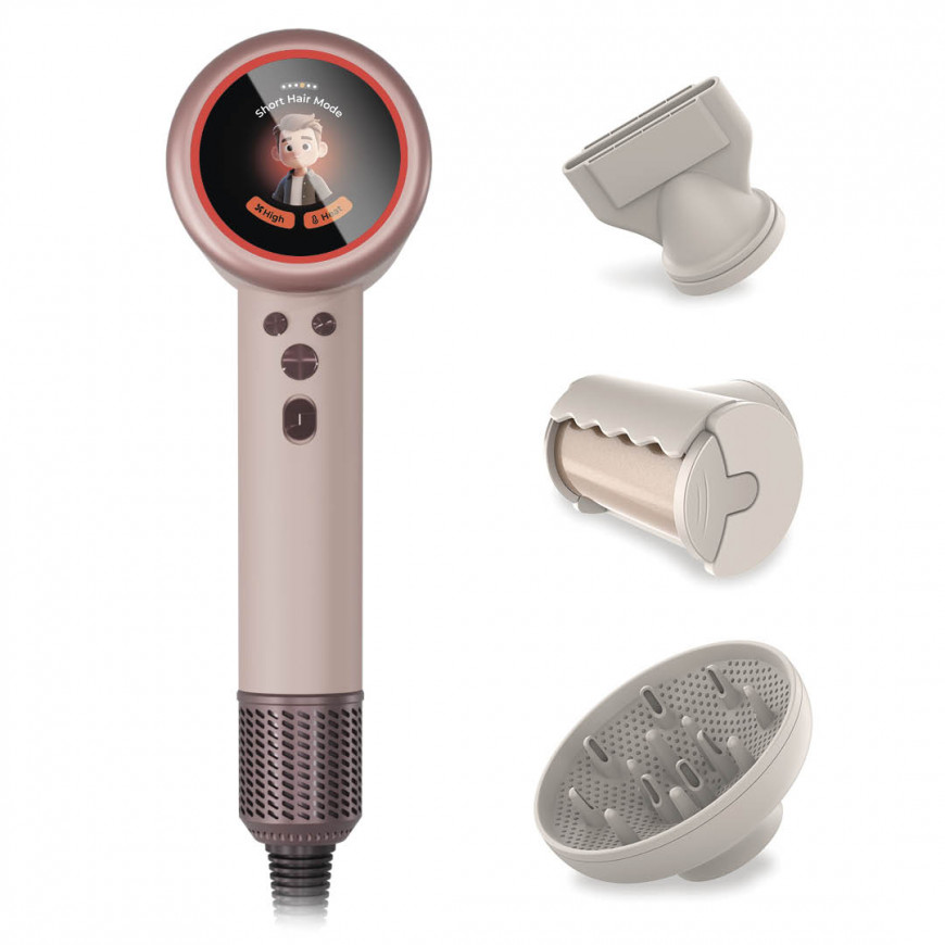 Потужний фен 2000 Вт з двигуном BLDC, дисплеєм та плазмовою іонізацією + 3 насадки AusHauz Нюдовий