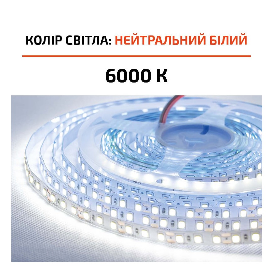 Ця стрічка LED є світлодіодною стрічкою холодного білого кольору з колірною температурою 6000K. Працює від 12 В і має 120 діодів на метр, що забезпечує яскраве та рівномірне світло.