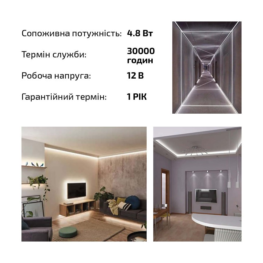 Ця стрічка холодного світла ідеально підходить для освітлення приміщень, чіткого білого світла з масксимально-ефективною витратою електрики.
