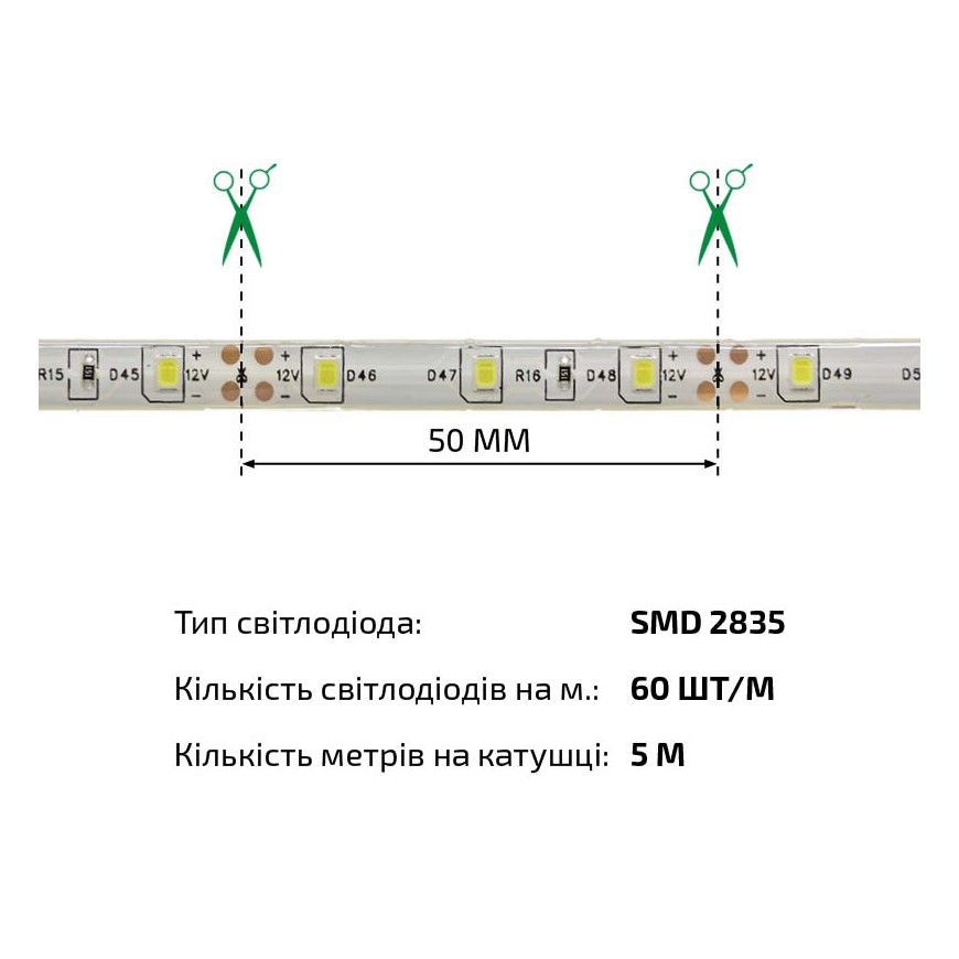 Ця стрічка LED є світлодіодною стрічкою нейтрального білого кольору з колірною температурою 4000K. Працює від 12 В і має 60 діодів на метр, що забезпечує яскраве та рівномірне світло.
