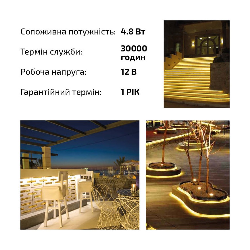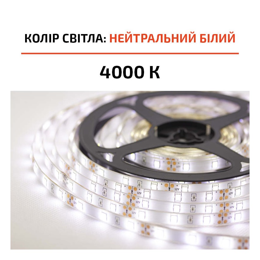 Ця стрічка нейтрального світла ідеально підходить для освітлення приміщень та вулиці, чіткого білого світла з масксимально-ефективною витратою електрики.