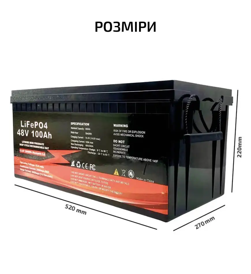 • Висока безпека: хімічний склад літій-залізо-фосфату усуває ризик вибуху або займання через сильний удар, перезарядку або коротке замикання.