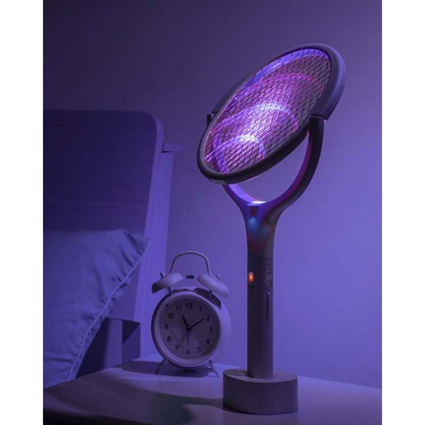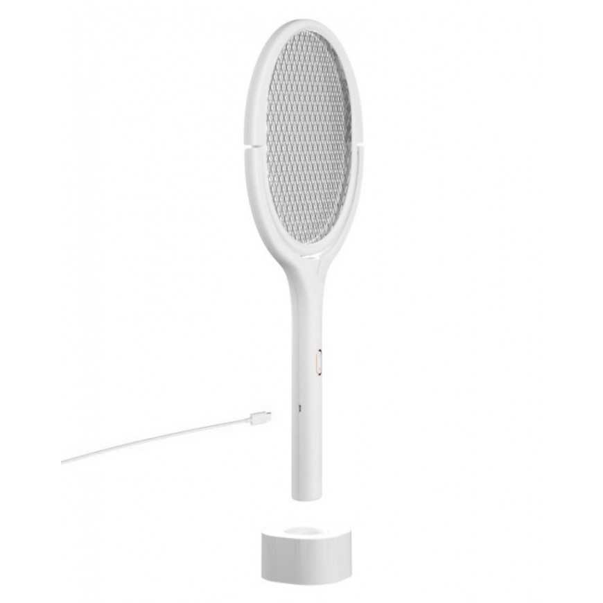 Принцип дії – за допомогою цієї електричної мухобійки Ви можете знищувати комарів, мух та інших комах, що сидить на поверхнях та літає в повітрі. Також електричну мухобойку можна встановити вертикально і закріпити на стіні (підставка та кріплення йдуть у комплекті). Активна поверхня складається із трьох шарів металевої сітки. По середньому шару сітки проходить потужний струм 3500В. Цей струм знищує комах, які потрапляють на поверхню сітки. Для залучення комах сітка підсвічується фіолетовим LED світлом, що ефективно приваблює комах.