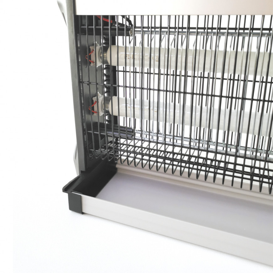 Обладнаний 2 інсектицидними ультрафіолетовими лампами потужністю 10W кожна, пристрій має потужність 20W, що дозволяє ефективно знищувати комах у приміщеннях та відкритих майданчиках площею 70-120 м.кв.